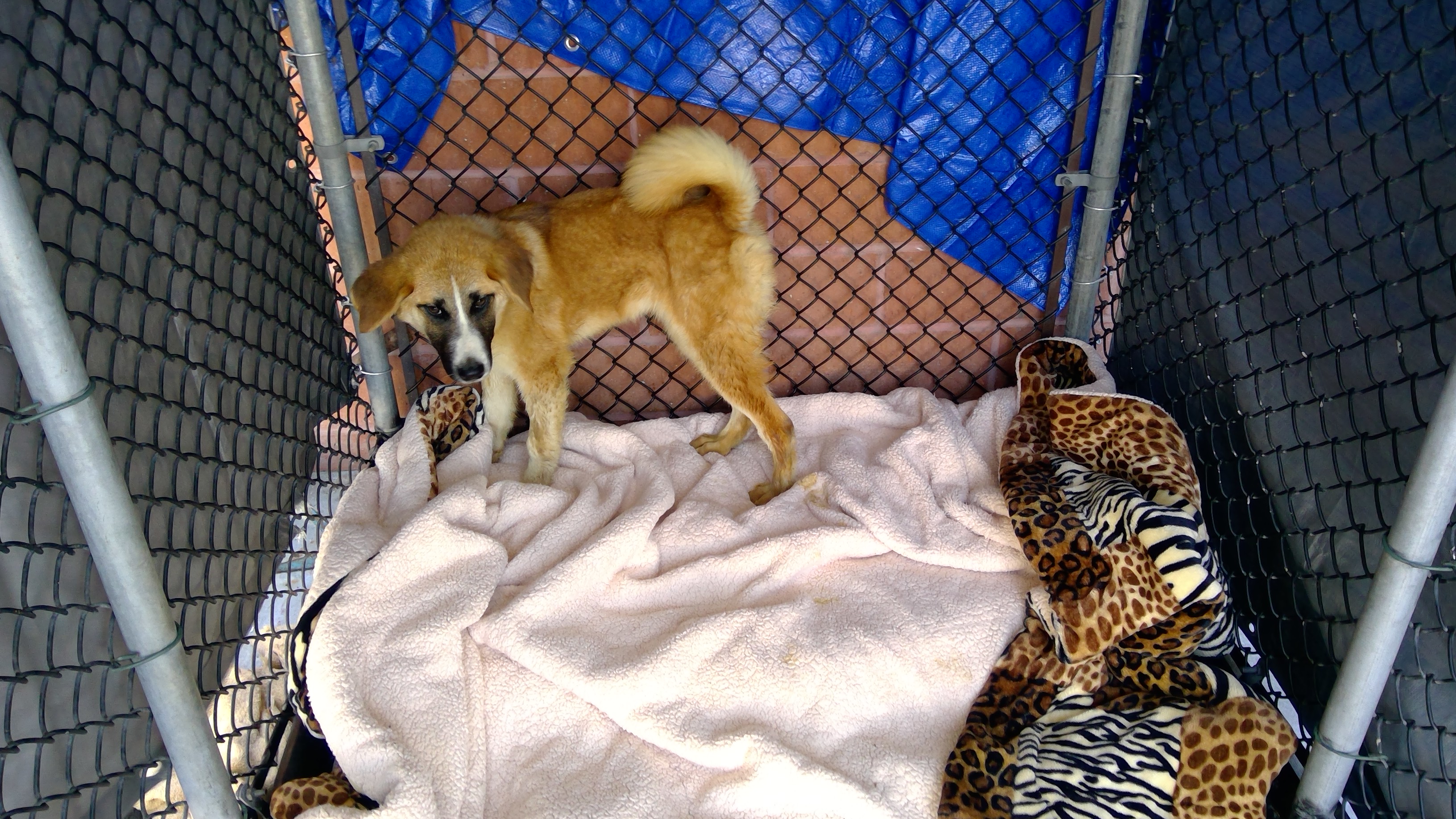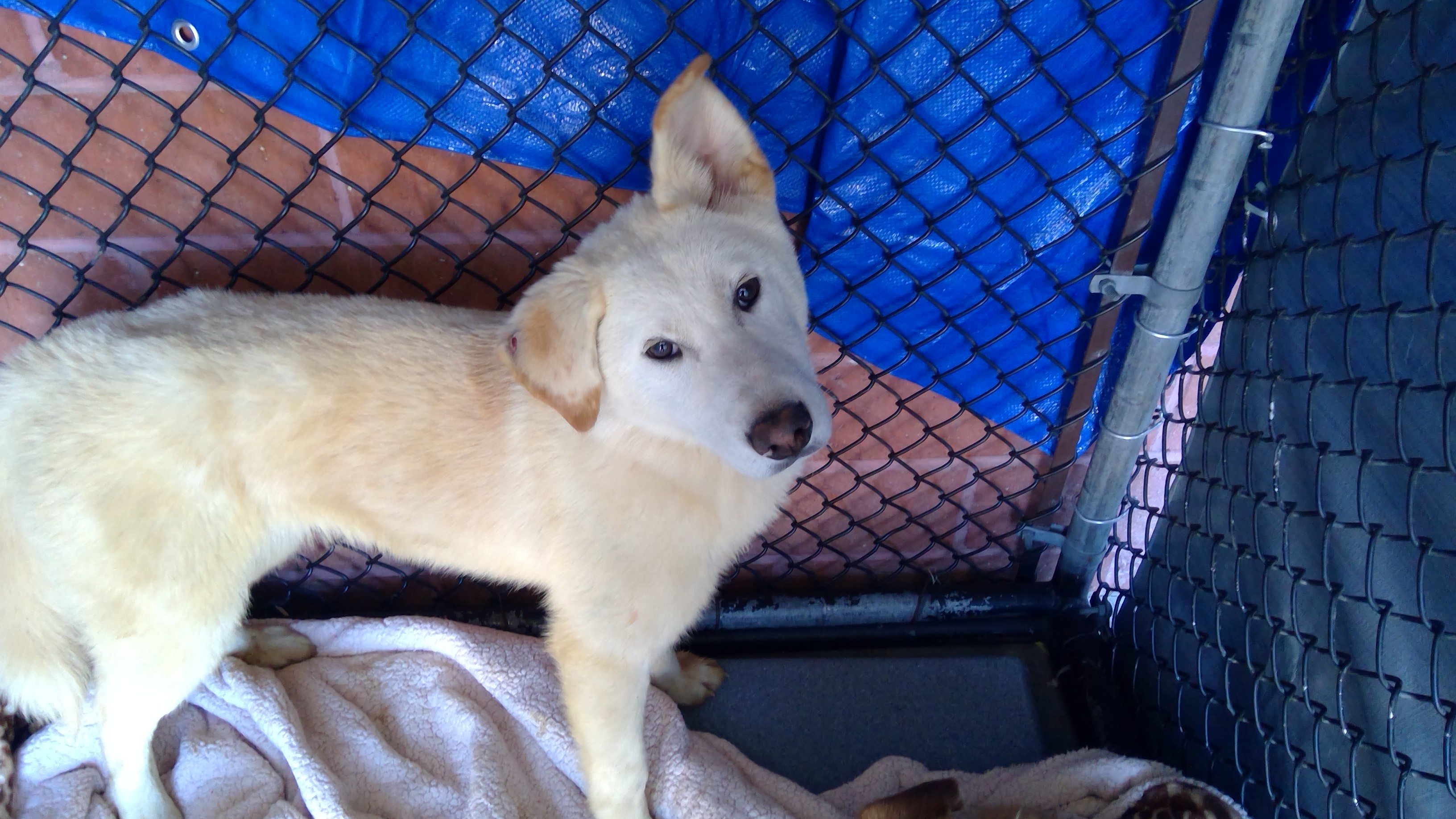 26-09013 is a tan/white, male adult dog, that weighs approximately 64 lbs. The intake date was 3/26/2026 from the City of South Gate.