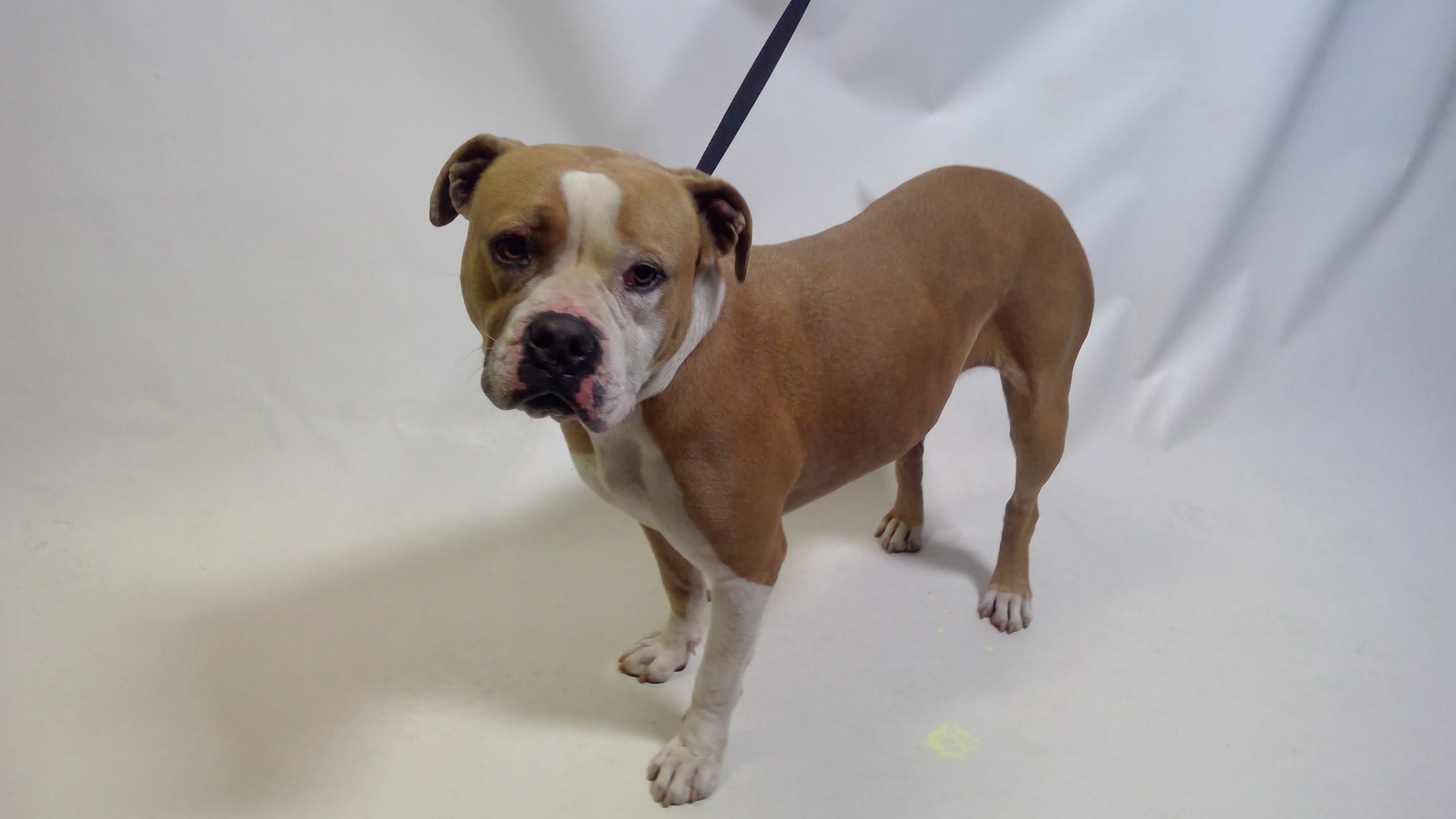 26-04730 is a brown/white, male adult dog, that weighs approximately 66 lbs. The intake date was 11/6/2025 from the City of Norwalk.