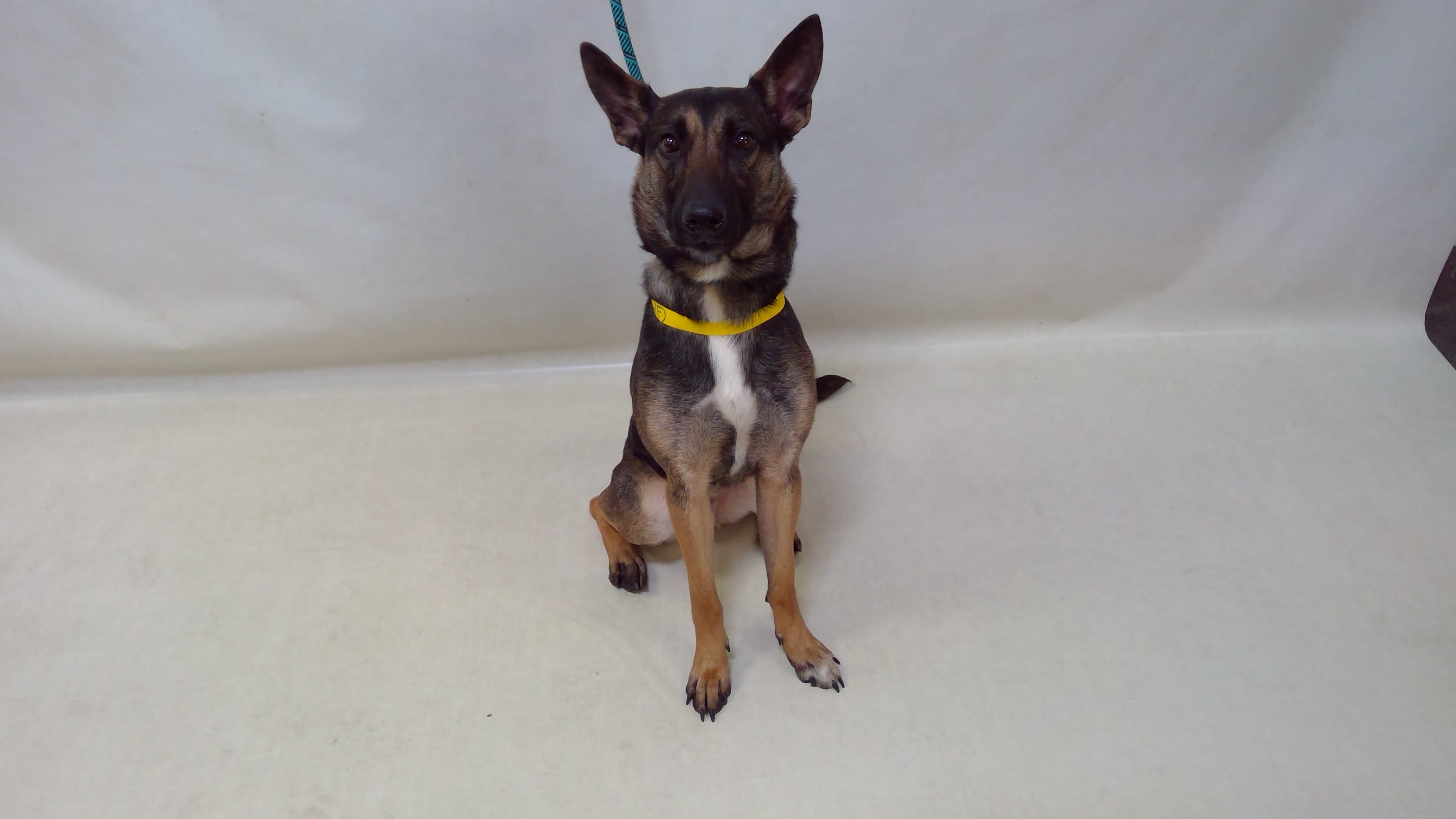 26-07989 is a black/tan/white, female adult dog, that weighs approximately 61 lbs. The intake date was 2/26/2026 from the City of Montebello.