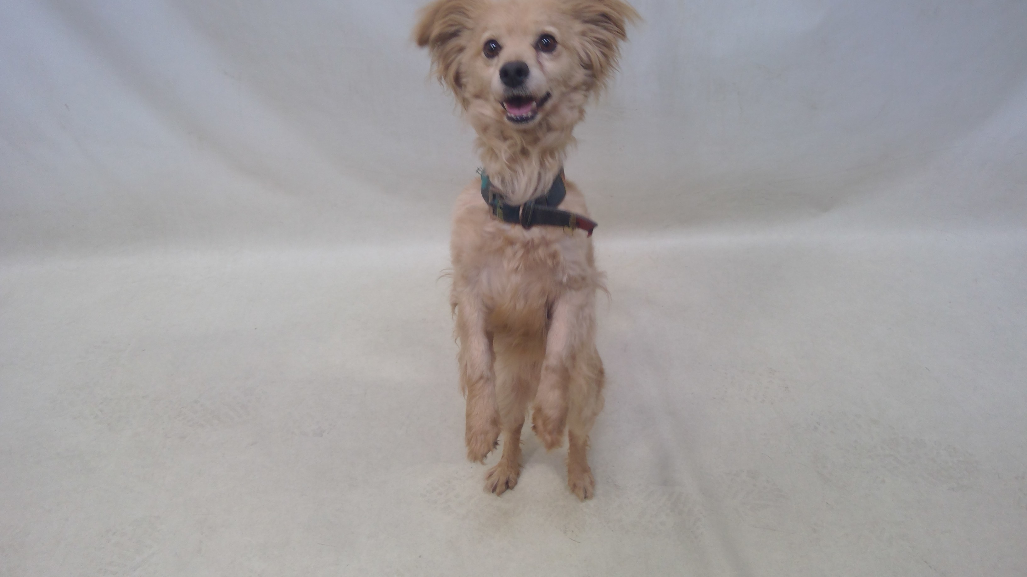 26-09991 is a beige/white, female adult dog, that weighs approximately 11 lbs. The intake date was 4/17/2026 from the City of Santa Fe Springs.