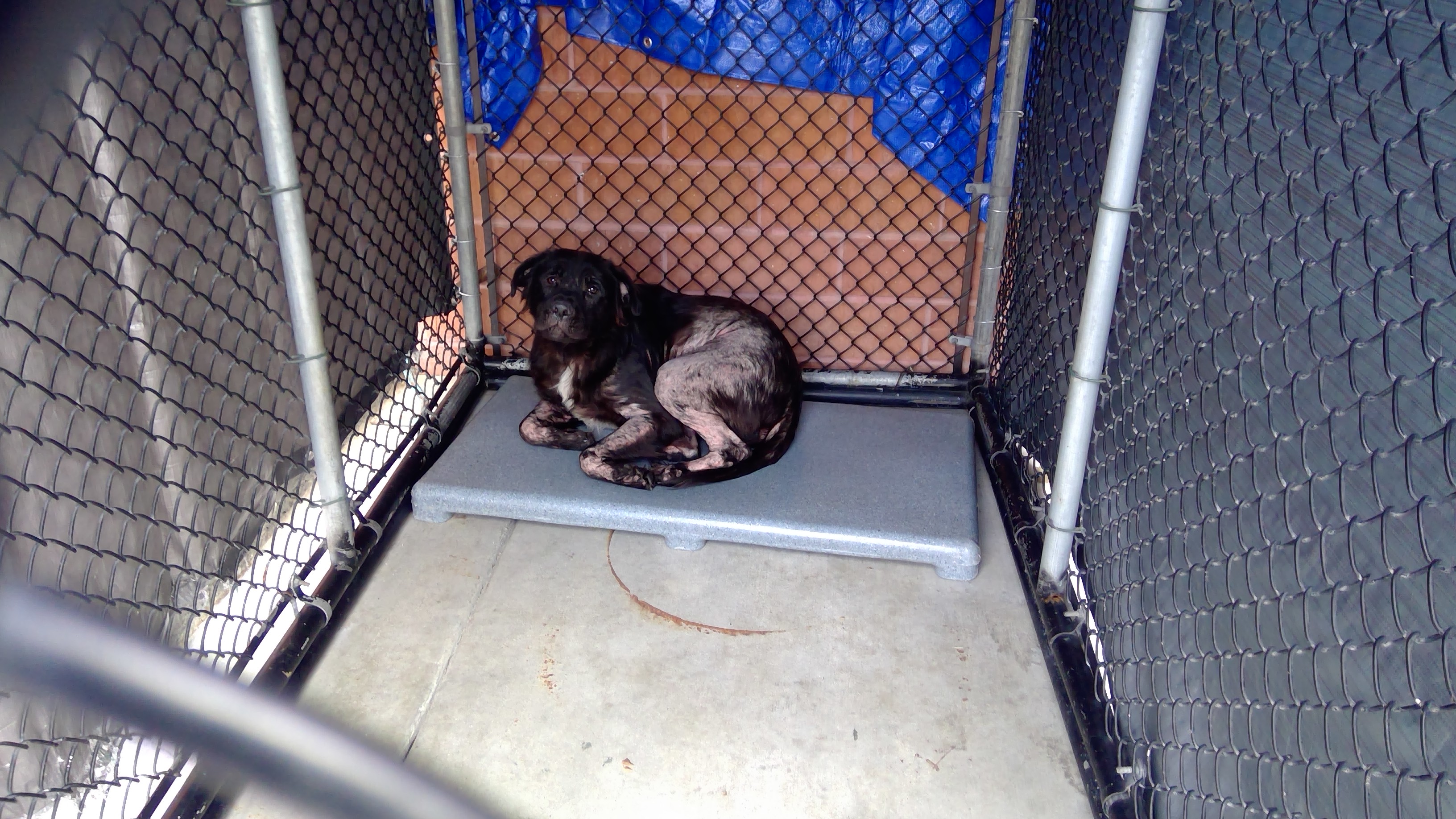 26-07764 is a black/tan/white, male adult dog, that weighs approximately 6 lbs. The intake date was 2/18/2026 from the City of South Gate.
